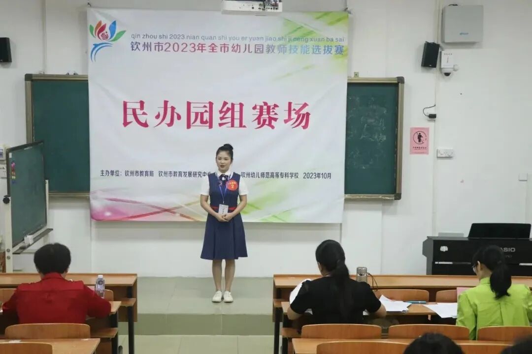 为进一步提高钦州市幼儿园教师的专业素养和专业能力,展示钦州市幼儿园教师专业风采,推选出优秀幼儿教师参加广西壮族自治区幼儿园教师技能大赛,由钦州市教育局、钦州市教育发展研究中心主办,钦州幼儿师范高等专科学校承办的钦州市2023年全市幼儿园教师技能选拔赛于2023年10月14-15日在钦州市幼儿师范高等专科学校举行,各县(区)初赛推选出44名幼儿园一线教师参加本次技能选拔赛。