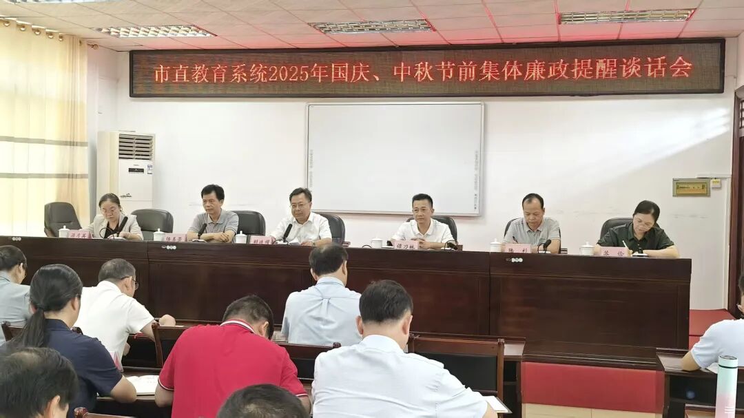 9月29日,市直教育系统专题召开国庆、中秋节前集体廉政提醒谈话会,市教育局班子成员、局机关干部和市直学校主要领导参加会议,市委教育工委书记,市教育局党组书记、局长赖廷耀主持会议并讲话。