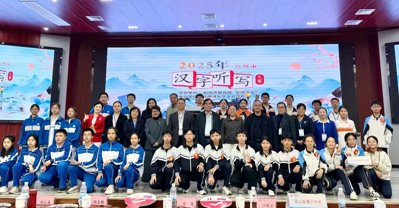 2025年11月30日,由钦州市教育局、北部湾大学联合举办的2025年钦州市汉字听写大赛在北部湾大学圆满落幕。来自灵山、浦北、钦南、钦北、市直的16个代表队共96名选手汇聚一堂,同台比拼。