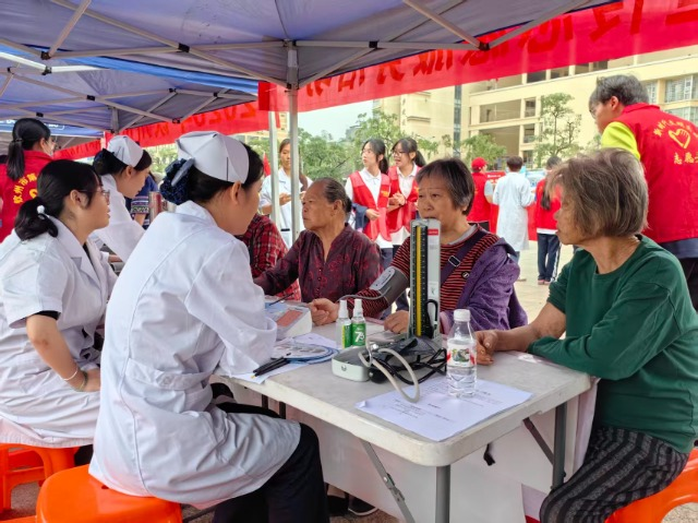 中医药保健点人气最旺,钦州市卫生学校志愿者为市民测血压、艾灸、问病史、聊近况……耐心解答老人们对慢性病的困惑,并根据每位老人的健康情况给出针对性建议。“他们讲得很细,平时不懂的保健知识,今天一下子就听明白了,还免费测了血压,太贴心了!”一位市民感慨道。