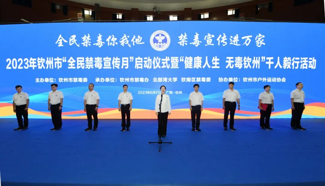 近年来,我市始终坚持以人民为中心的发展思想,保持对毒品“零容忍”,坚持“打、防、管、控”相结合,坚定不移严打毒品违法犯罪,不断提高毒品治理体系和治理能力现代化水平,有效保护了人民生命健康。市委常委、政法委书记古保华在启动仪式上致辞,副市长、市公安局局长吴永辉主持。市委常委、秘书长曾智,北部湾大学党委书记韩峻峰,市中级人民法院院长唐军成,市人民检察院检察长廖庆峰,自治区禁毒办副主任、自治区公安厅禁毒总队副总队长黄鸿杰等领导参加活动。