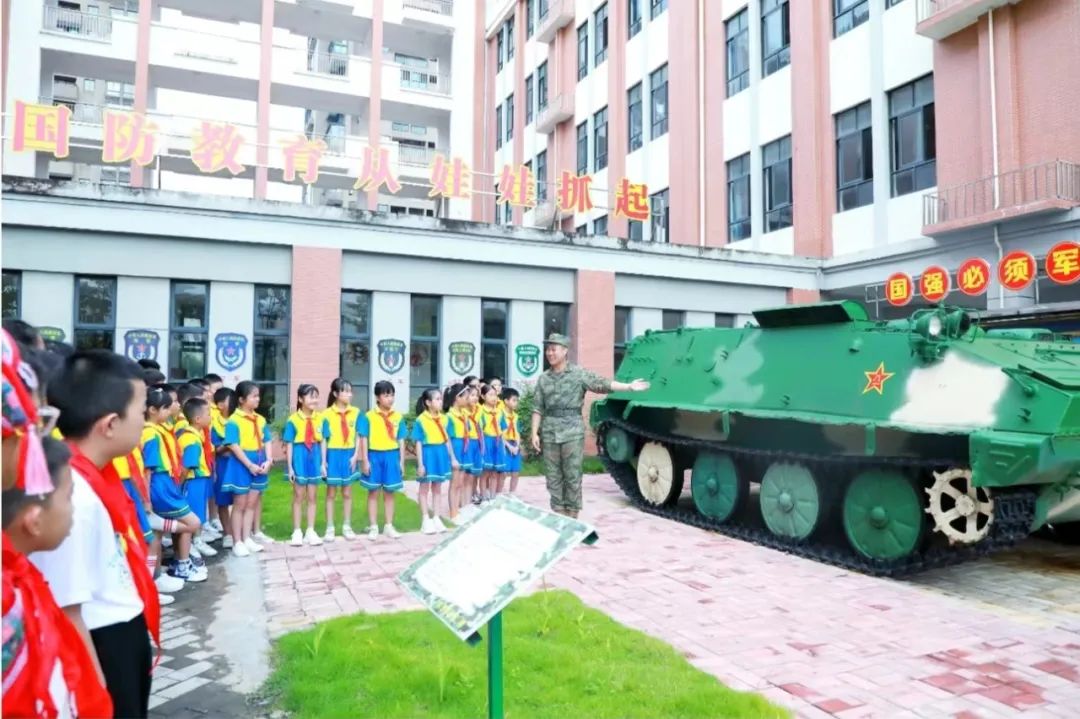 “为什么装甲车要涂上草绿色?”“装甲车没有窗户,我们坐在里面怎样才能看到外面的东西呢?”在钦州市第九小学,国防教育校外辅导员——钦州军分区的解放军叔叔带来国防教育“开学第一课”,同学们听得津津有味。