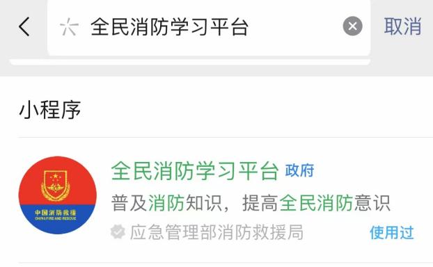 第一步:微信或支付宝搜索“全民消防学习平台”小程序