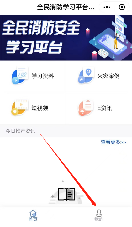 第三步:学习资料在学习平台首页,有四个栏目可学习,分别为:学习资料、火灾案例、短视频和E资讯,点击进入即可学习。