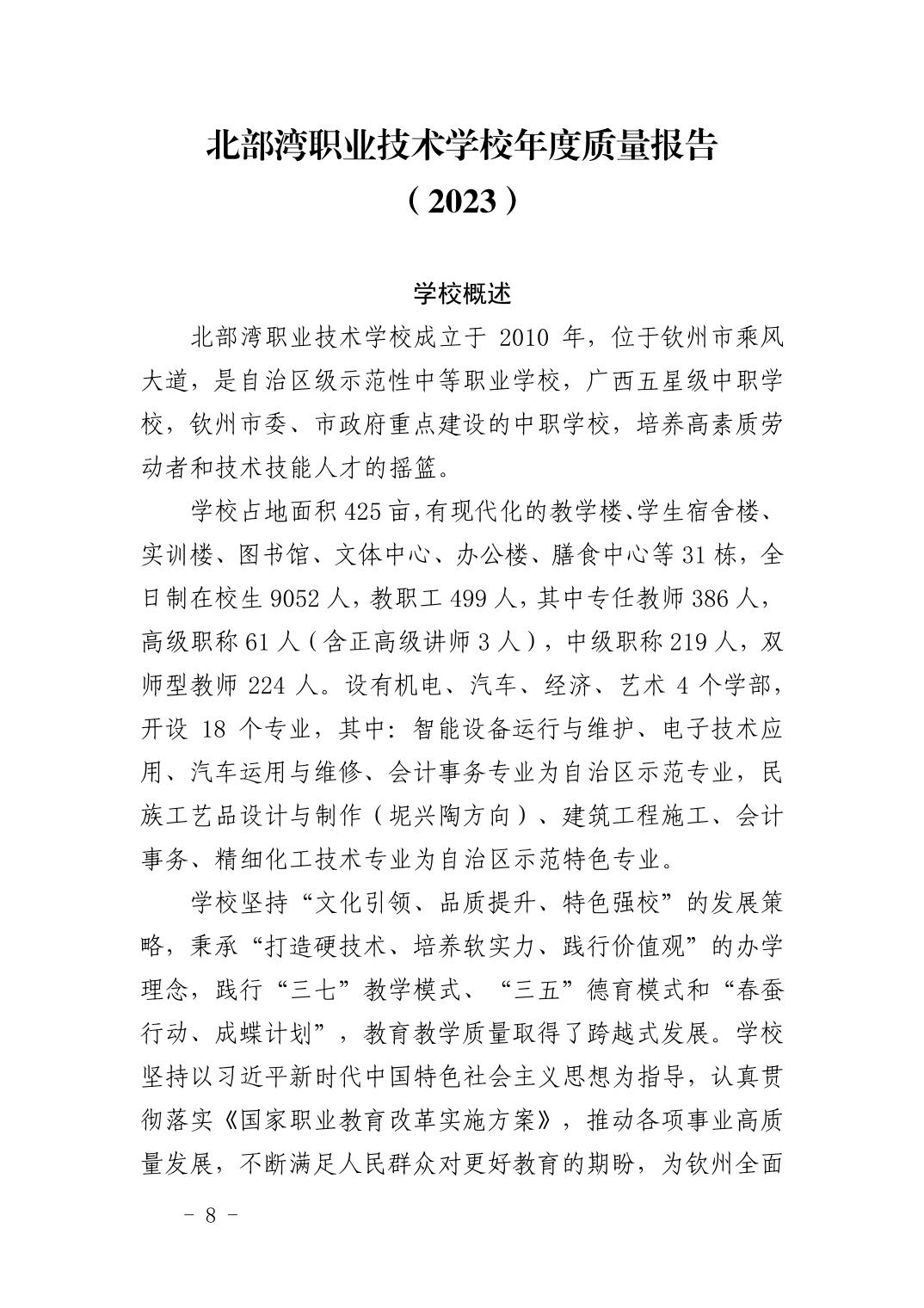北部湾职业技术学校中等职业教育质量年度报告(2023年)