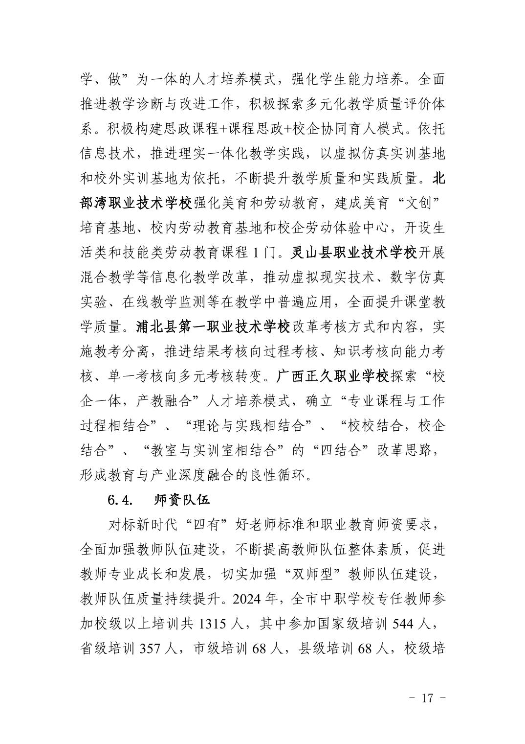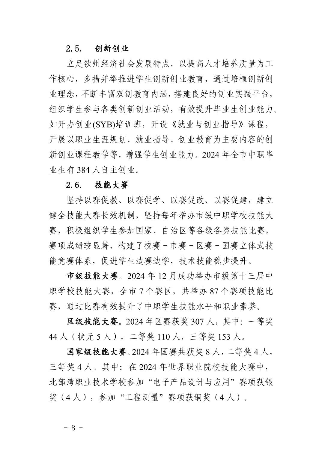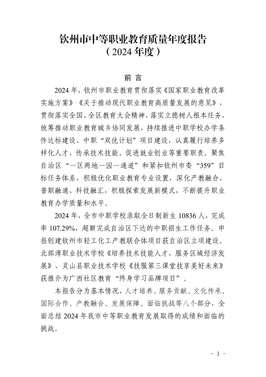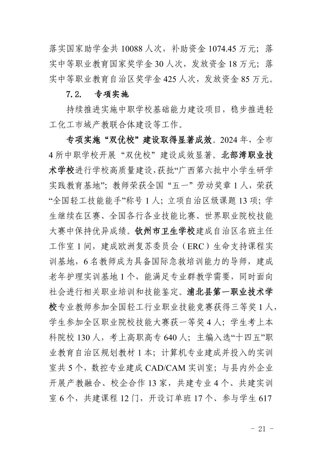 钦州市中等职业教育质量年度报告(2024年度)