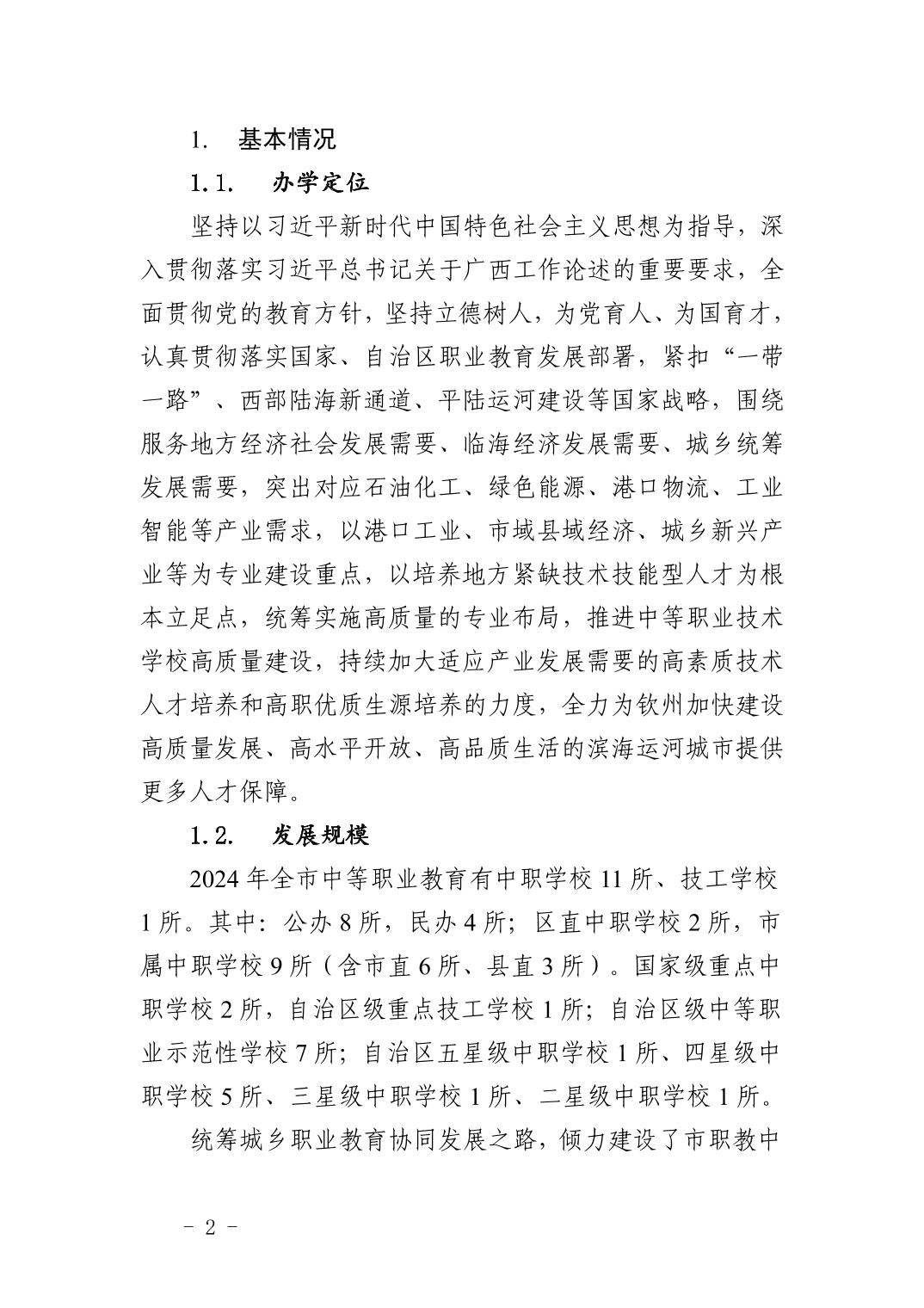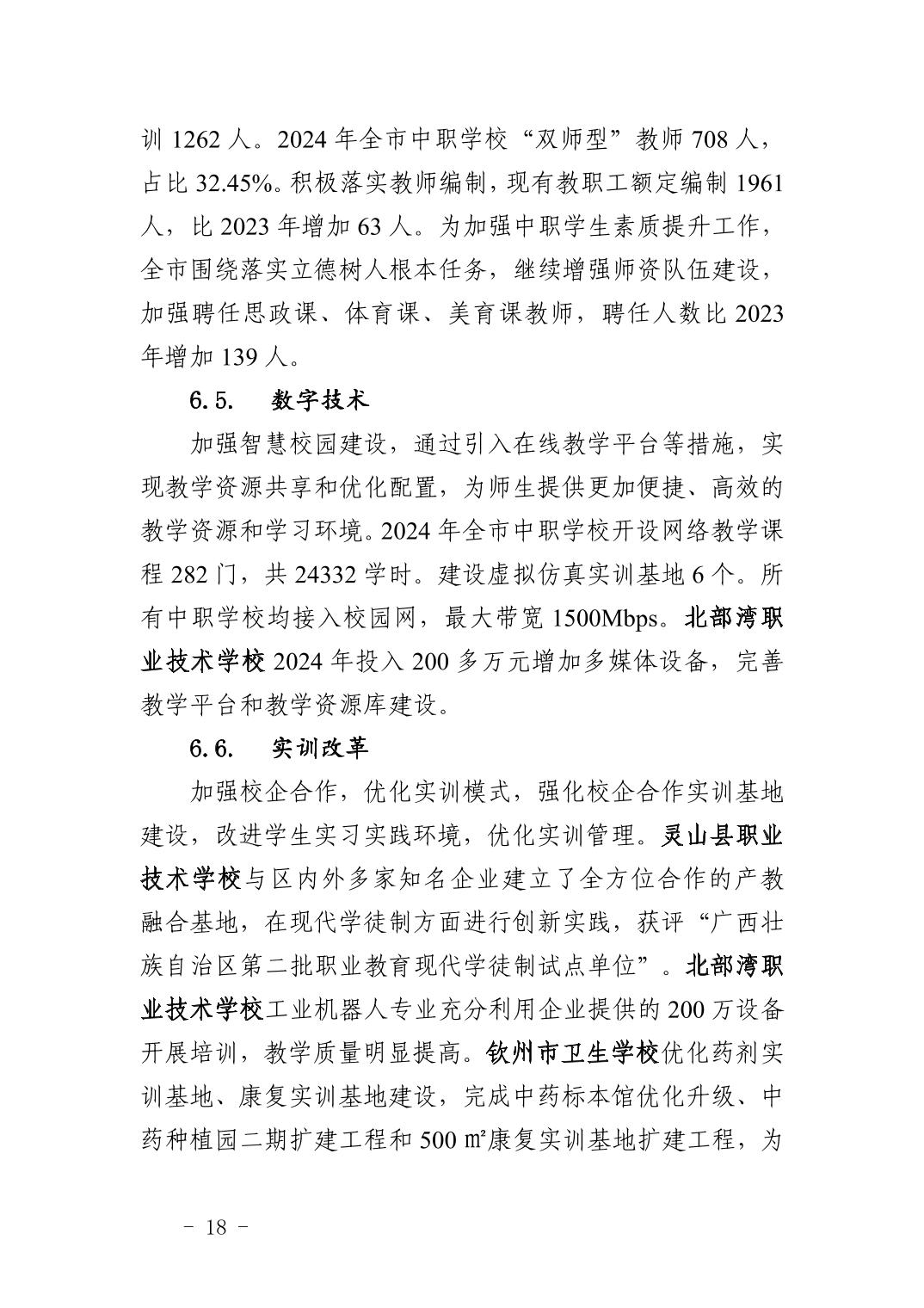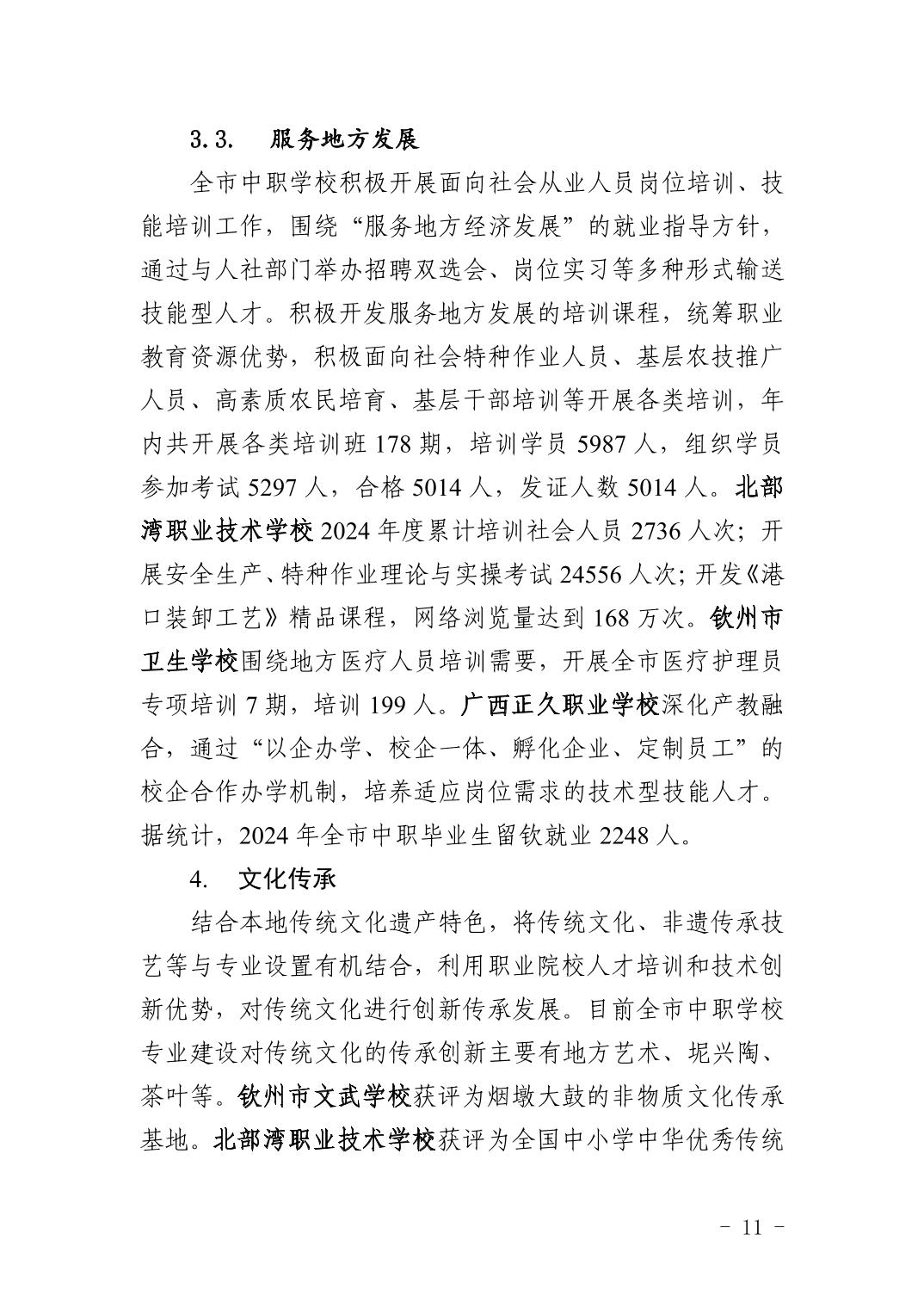 钦州市中等职业教育质量年度报告(2024年度)