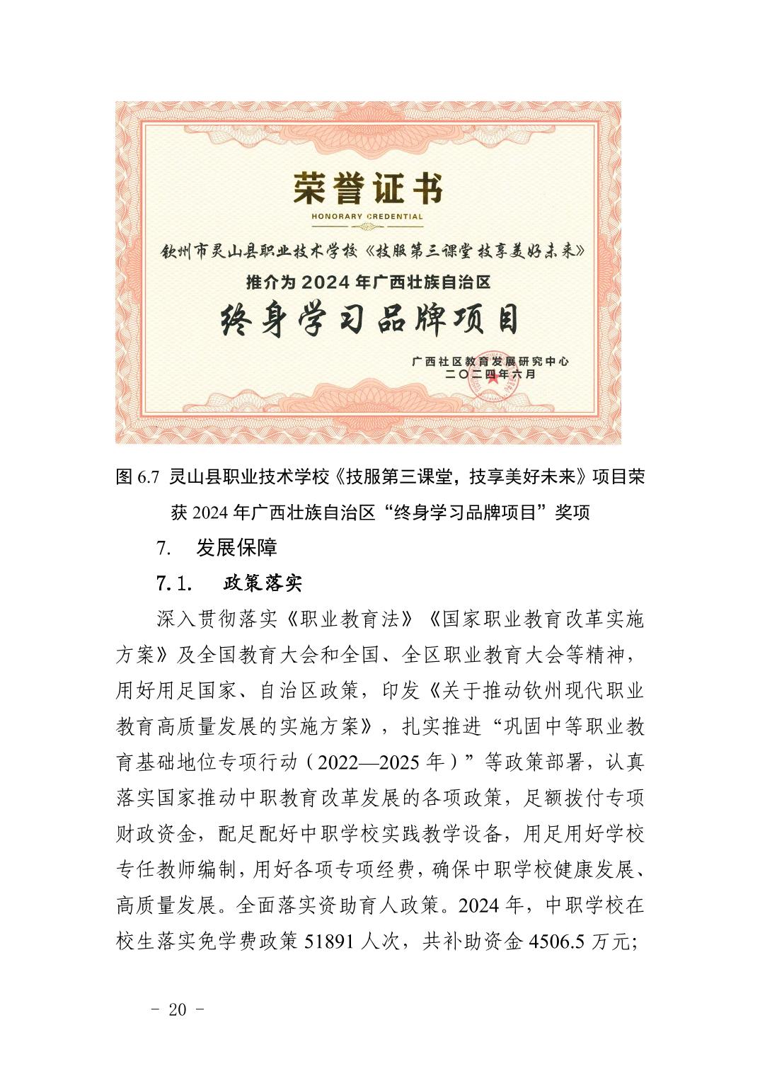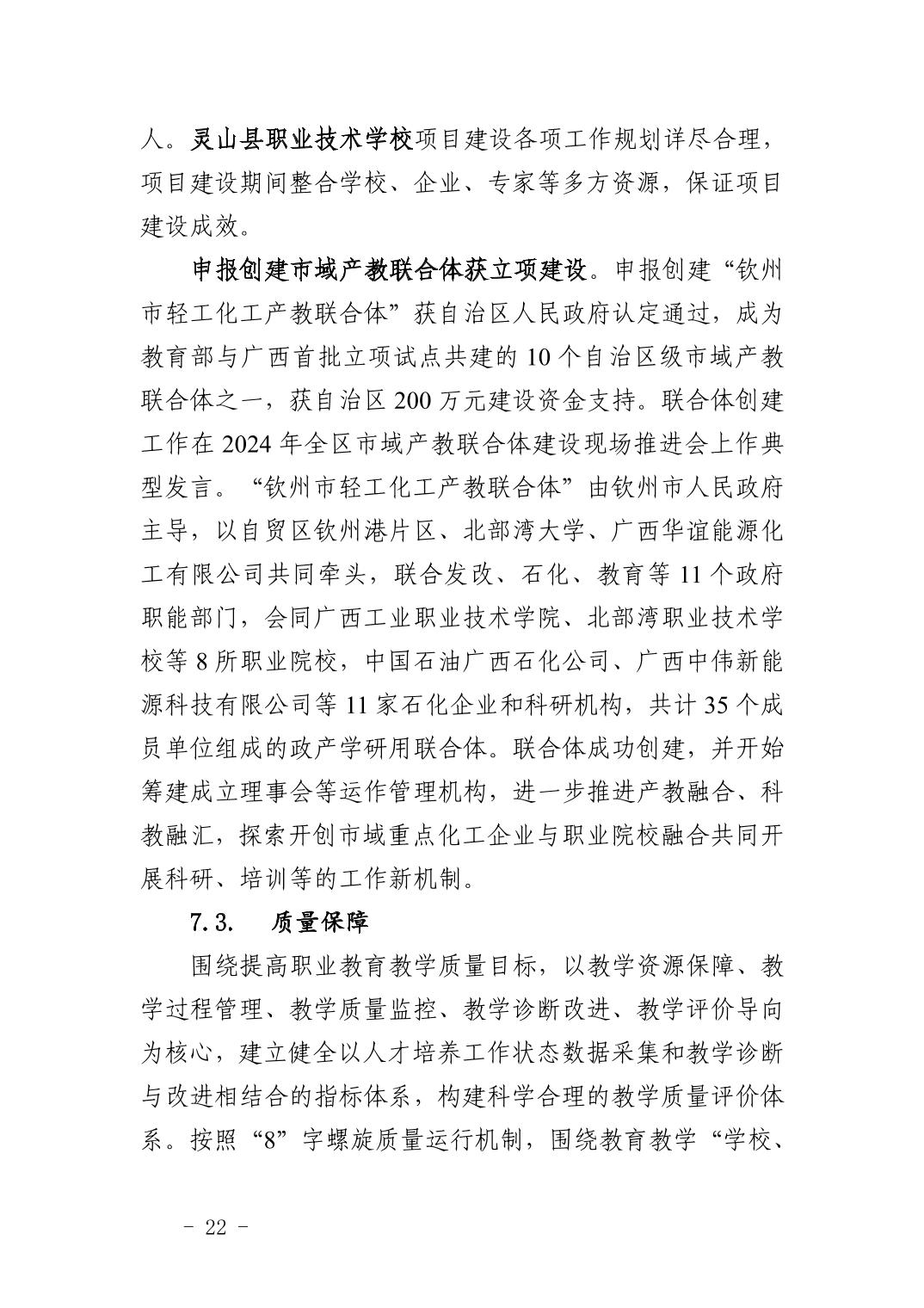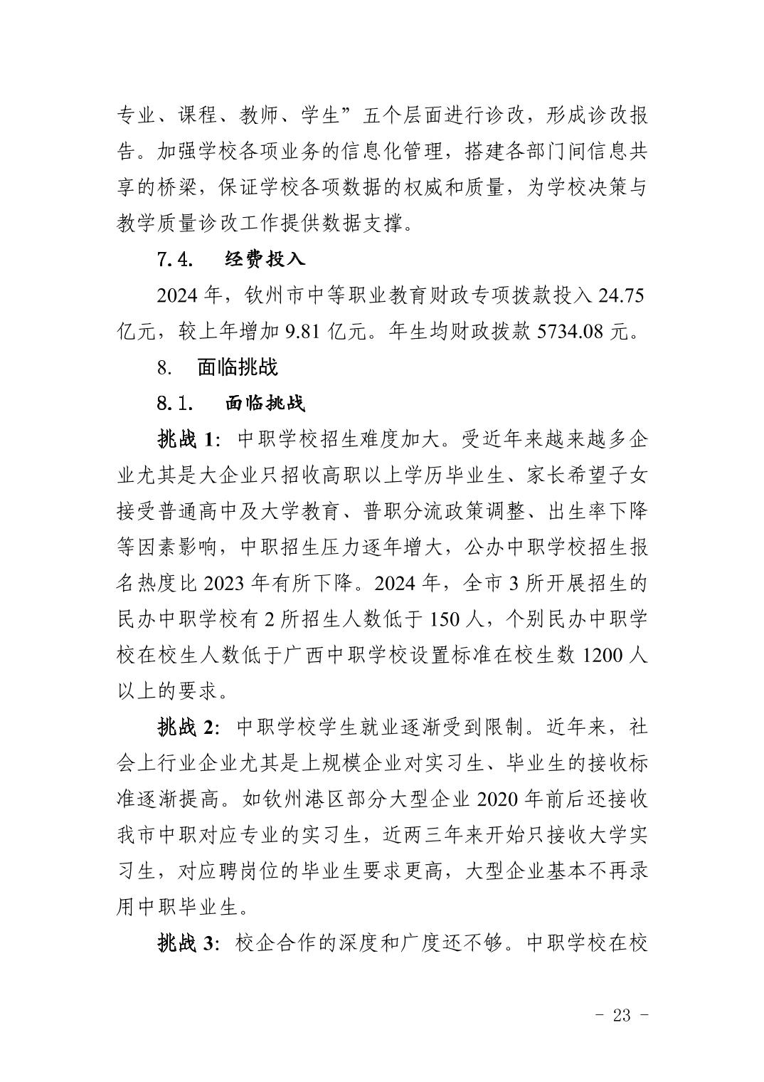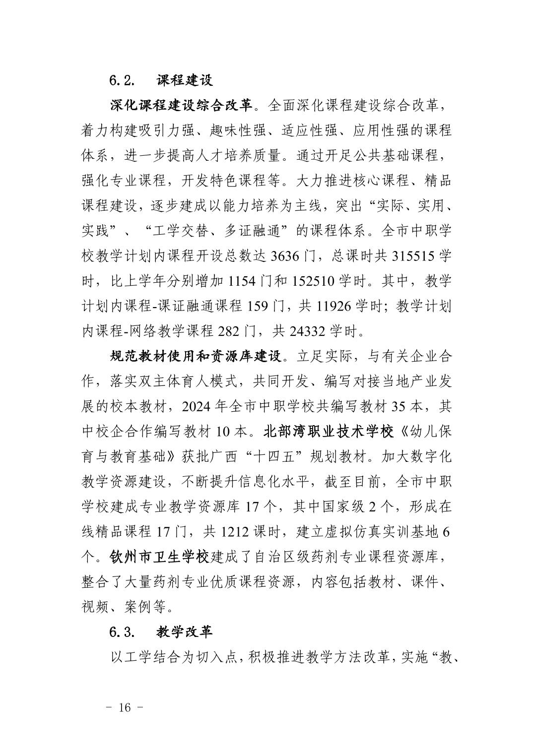 钦州市中等职业教育质量年度报告(2024年度)
