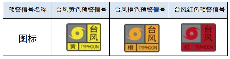 (一)台风黄色、橙色、红色预警信号图标为: